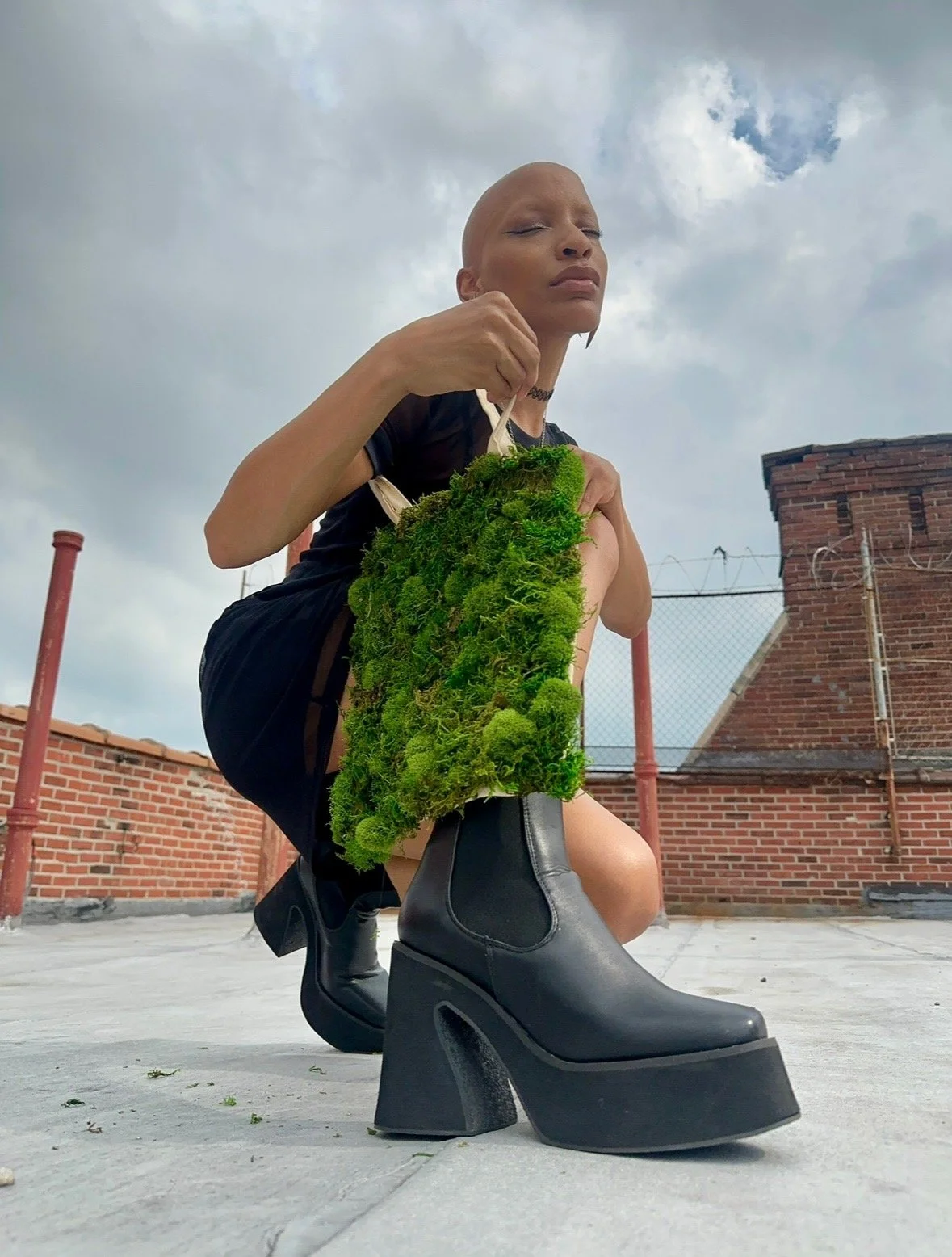 Sustainability is woven into every aspect of my practice. I primarily use thrifted and recycled materials as the foundation for my moss sculptures, honoring both the environment and the transformative spirit of my medium. Each piece becomes a meditation on renewal—not just through the living moss itself, but through the reclaimed materials that give it structure and form.